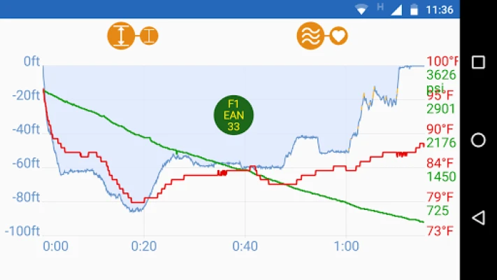 • All dive data plus RMV/SAC, weight, bottle and gas parameters