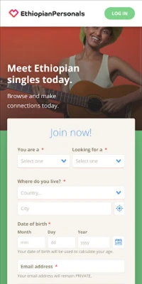 EthiopianPersonals is the place for dynamic, quality Ethiopian singles to meet and connect for relationships, love, friendship and marriage. Install the official EthiopianPersonals app and see the difference. Discover, connect, have fun—securely and privately.