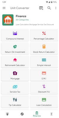 ✓ Financial calculators - Loan calculator, Compound interest calculator, Retirement calculator, Service tax calculator, Stock calculator