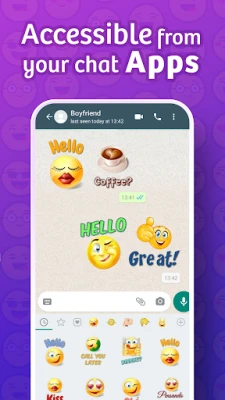 β This is not an android emoji keyboard, these emoticons are not for texting. Our smiley and sticker are sent as images (MMS) and not as SMS.