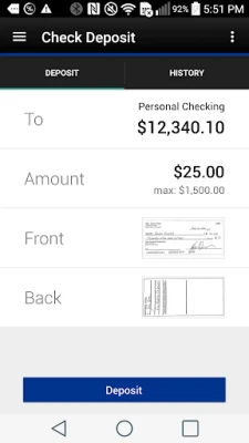 • Deposit checks right from your Android phone